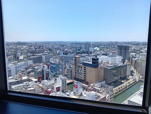 何十年かぶりで25階までエレベーターで行くと、思い出したのは「ばるーん」は25階で降りて、階段を上って26階に行くのだったと思い出しました(26階は今は管理事務所になっていました)。今あるこの「北海道」の客席から撮った下の写真はビルの西南方向ですが、昔の「瀬里奈」からは横浜港が見えたというので、「瀬里奈」は今はベイシェラトンにその眺望を阻まれてしまった東南側に面していたのかもしれません。 この「北海道」という店、大きな個室も多数あるらしく、眺望も居心地も良くなかなかの穴場でした。